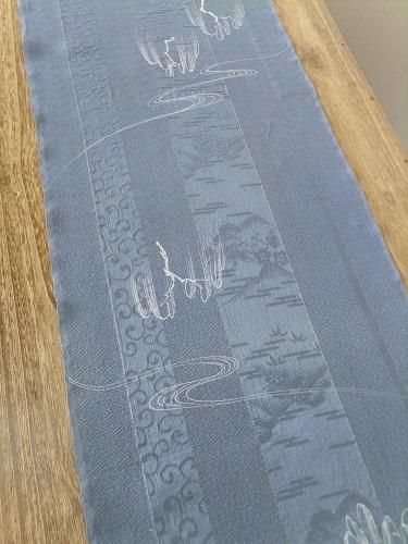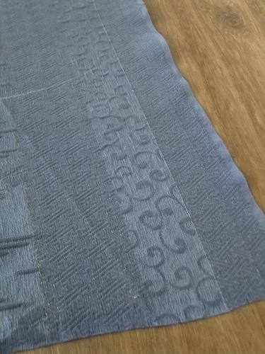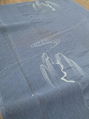 地模様が浮かび、山の景色も見え隠れ、唐草文も効いてます。薄手で軽やか、さらっとしなやかな風合い。ストール風に、裏地に、飾ったりも。。。色褪せ、薄い汚れあり。
