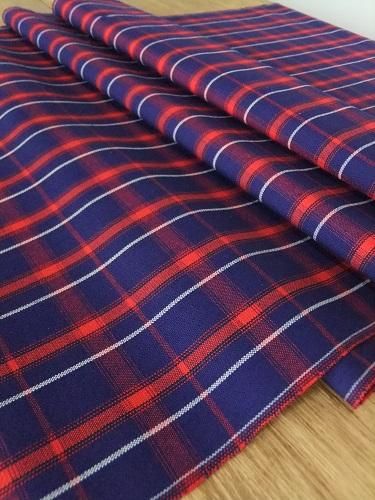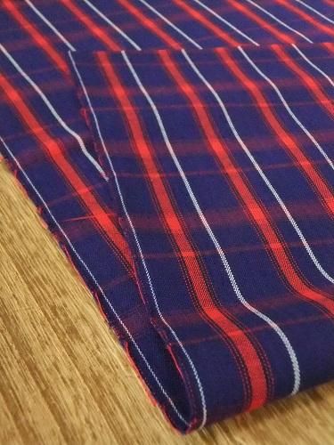 ちょっぴり鮮やかなブルーに赤と白と。レトロな雰囲気が漂うチェック柄。薄手でさらっと滑らかなウール地です。冬物アイテム、巻きスカートにも。