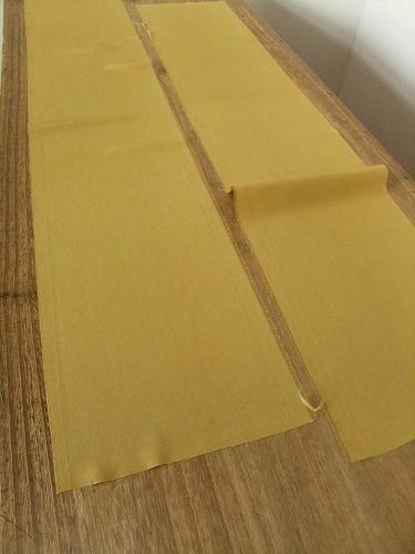ちょっと明るいくすんだ黄色。するんと落ち感のある風合いです。着物の裏地(八掛地)。折り山跡、汚れあり。裏地に、目隠しに・・♪