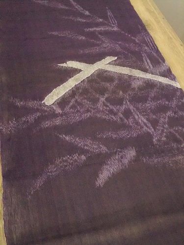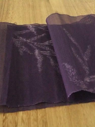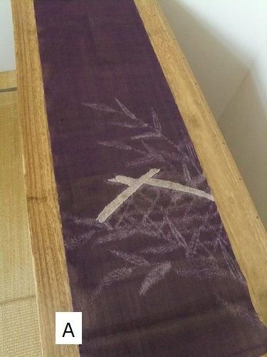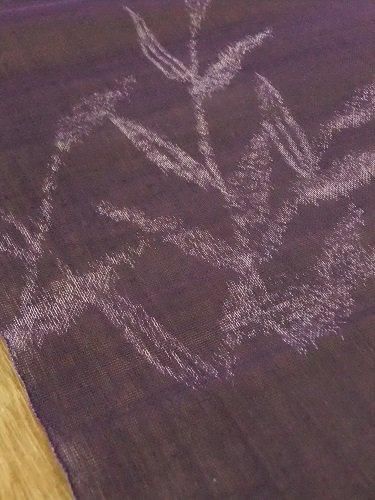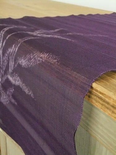 ハリがあり、少し固め、軽やかで(網戸のような)メッシュ織り。透け感が涼やかです。掛けたり、仕切りのようにも・・。夏帯地・紗。