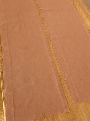 さらっとしなやかな風合いです。ちょっと赤みがかったベージュが、丸みのある和み色・・♪ 裏地にディスプレイに。薄い汚れ、折り山跡あり。