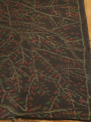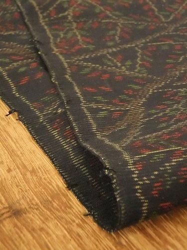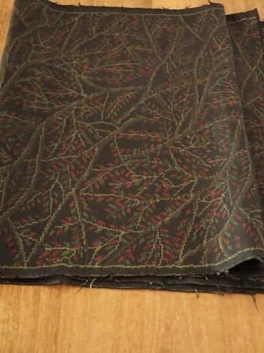 ほんのりツヤのある黒地に、赤と緑の小さな葉っぱが散りばめられて。つるっとシャリっと、少し柔らかで・・。袋物、壁に、裏地に、ディスプレイに。折り山跡が目立ちます。紬地。