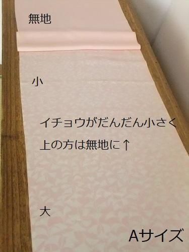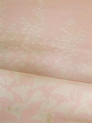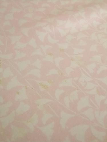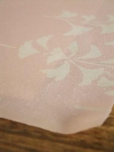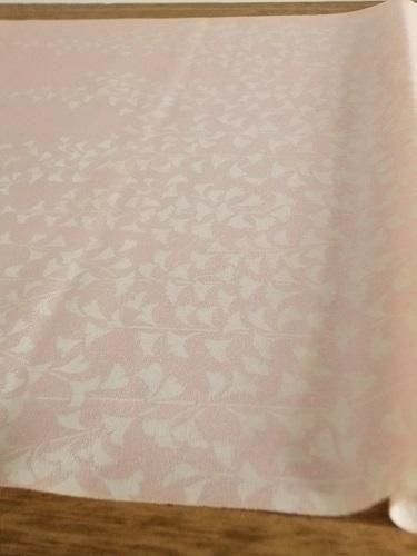 薄手で、サラッと落ち感のある風合いです。薄ピンクに白い銀杏柄。掛けたり、裏地にも・・。柄はAとBの2種類。全体に黄ばみあり、汚れあり。イチョウ踊ってますか・・?