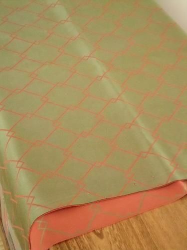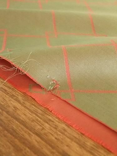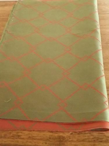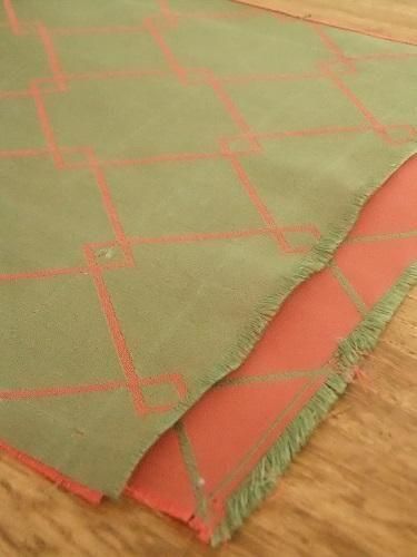 くすんだグリーンとオレンジピンク。しっとりツヤやか(ビロードのようなツヤ♪)表と裏はお好みで・・。軽やかで、ちょっとふっくら、つるっとしています。ディスプレイにも。折り山跡あり。化繊。*Aは幅の広いサイズです