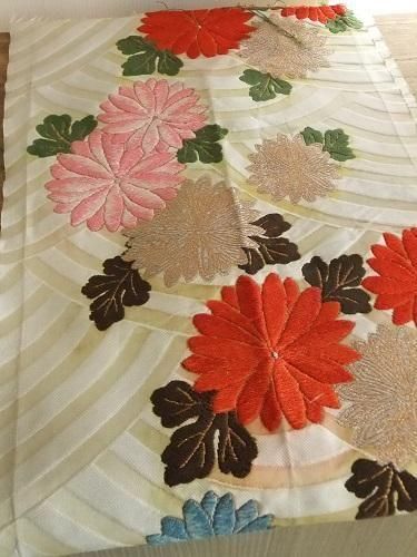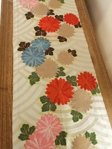 カラフルな菊模様(帯地)N-949