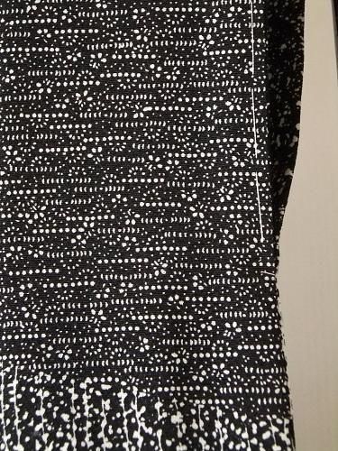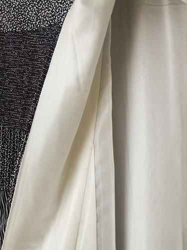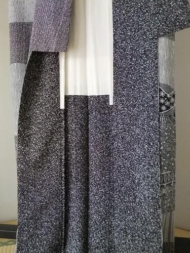 するする、さらっと落ち感のある風合いです。緩やかなシボがあります。白と黒の組み合わせ、スッキリと、しっとりと・・・パッチワークのように盛り込まれた柄。見るほどに華やかです ♪ リメイクにも。訪問着。