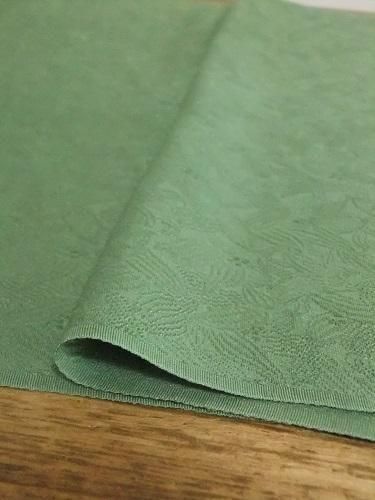 地模様がぎっしりと、華やかです・・・♪ さわやかで柔らかなグリーン。するすると落ち感があり、しなやかな風合いです。巻いたりにも・・。