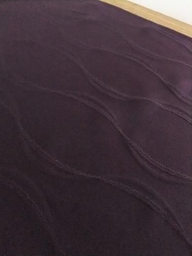 ほんのりハリ、するするとしなやかな風合いです。さり気なく妖しく、ゆらゆらとタテワク模様、濃く深く暗めの紫が魅力的です。伊と幸製。