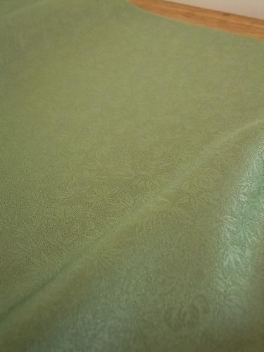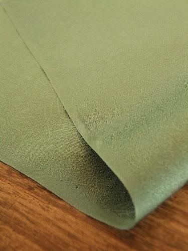しっとりとツヤやかです。笹、キリ、鳳凰がギュッと詰まってます・・♪ 薄手で、するするすると落ち感のある風合い。裏地、ディスプレイなどにも。ツヤのある灰みのグリーン。