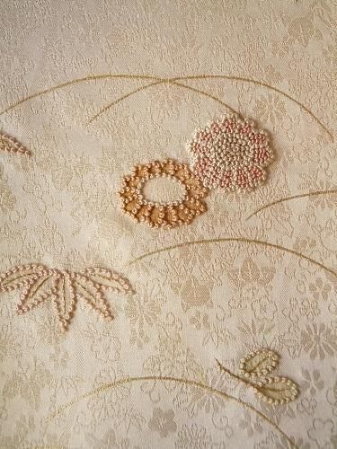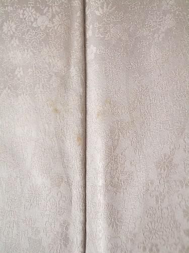 ツヤやかな地模様、華やぎます・・♪ ぼかし、刺繍、さり気なく、でもちゃんと主張します。リメイク、ディスプレイにも。さらっと、ちょっとざらっと、しなやなか風合い。汚れあり。
