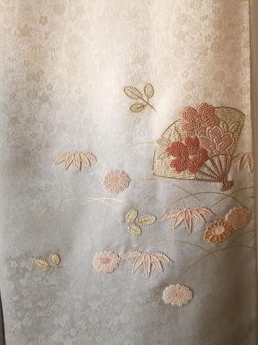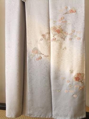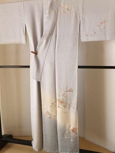 相良刺繍のシルバーの着物 K-949